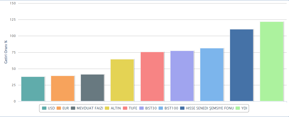 1 yıllık YDI ve diğer yatırım araçları getiri karşılaştırması